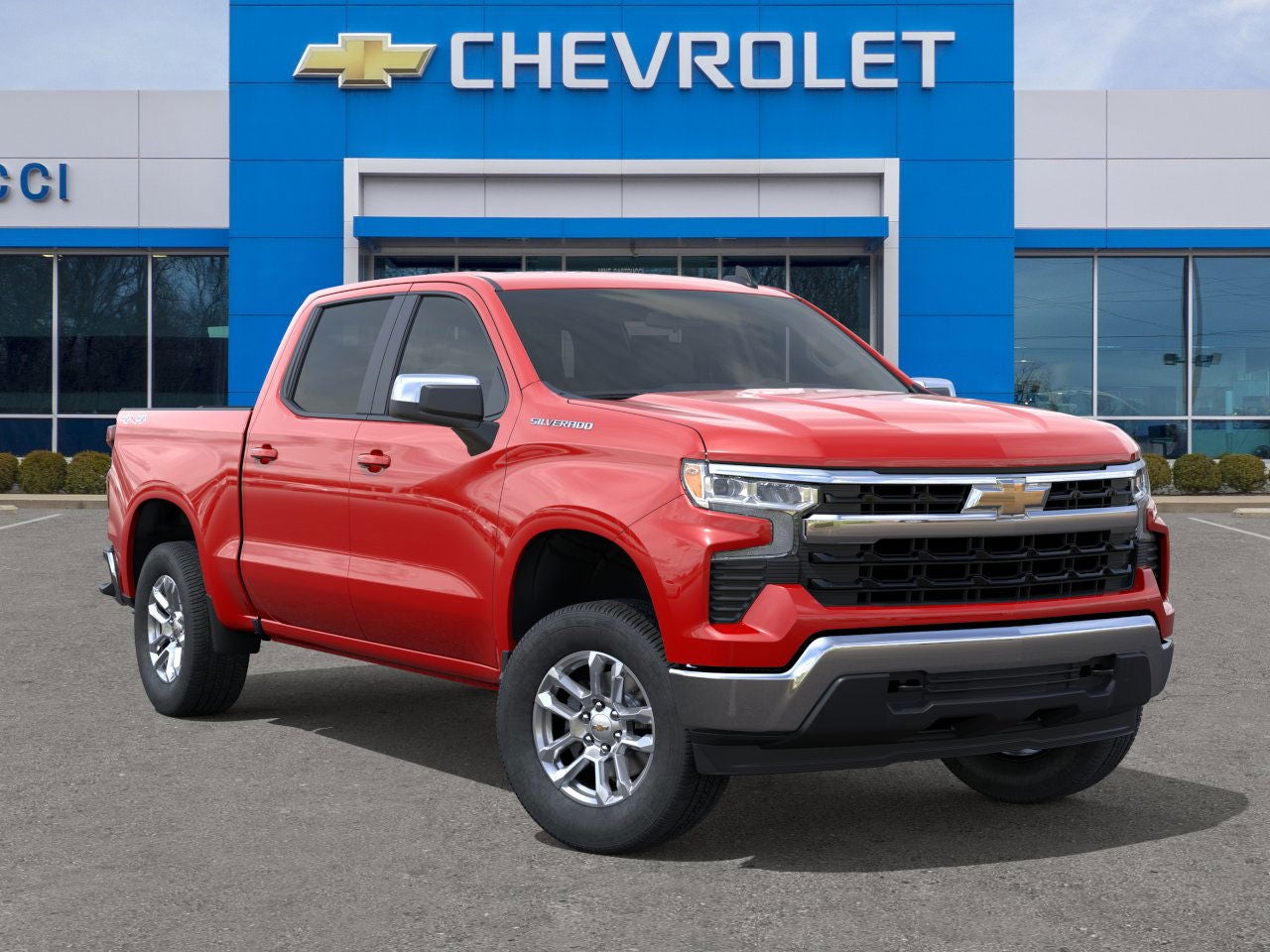 New Price! Red 2026 Chevrolet Silverado 1500 LT 4WD 8-Speed Automatic 2.7L I4 Turbocharged DOHC 16V LEV3-SULEV30 310hp Silverado 1500 LT, 4D Crew Cab, 2.7L I4 Turbocharged DOHC 16V LEV3-SULEV30 310hp, 8-Speed Automatic, 4WD, Red, Jet Black Cloth, 12.3 Multicolor Reconfigurable Digital Display, 120-Volt Bed Mounted Power Outlet, 120-Volt Interior Power Outlet, 4-Wheel Disc Brakes, 40/20/40 Front Split-Bench Seat, 6 Speakers, 6-Speaker Audio System, ABS brakes, Air Conditioning, All-Star Edition, Alloy wheels, AM/FM radio: SiriusXM with 360L, Apple CarPlay/Android Auto, Auto High-beam Headlights, Auto-Locking Rear Differential, Automatic Emergency Braking, Automatic temperature control, Bluetooth® For Phone, Brake assist, Bumpers: chrome, Chrome Mirror Caps, Cloth Seat Trim, Color-Keyed Carpeting Floor Covering, Compass, Convenience Package, Deep-Tinted Glass, Delay-off headlights, Driver door bin, Driver vanity mirror, Dual front impact airbags, Dual front side impact airbags, Dual-Zone Automatic Climate Control, Electric Rear-Window Defogger, Electronic Cruise Control, Electronic Stability Control, Emergency communication system: OnStar, Following Distance Indicator, Forward Collision Alert, Front anti-roll bar, Front Center Armrest w/Storage, Front dual zone A/C, Front Frame-Mounted Black Recovery Hooks, Front Pedestrian Braking, Front reading lights, Front wheel independent suspension, Fully automatic headlights, HD Rear Vision Camera, Heated door mirrors, Heated front seats, Heated Steering Wheel, Heated steering wheel, Hitch Guidance, Illuminated entry, Integrated Trailer Brake Controller, LED Cargo Area Lighting, Low tire pressure warning, Manual Tilt/Telescoping Steering Column, Occupant sensing airbag, OnStar Services Capable, Outside temperature display, Overhead airbag, Overhead console, Passenger door bin, Passenger vanity mirror, Power door mirrors, Power driver seat, Power steering, Power windows, Premium audio system: Chevrolet Infotainment 3 Premium, Radio data system, Radio: Chevrolet Infotainment 3 Premium System, Rear reading lights, Rear window defroster, Remote keyless entry, Remote Vehicle Starter System, Security system, Speed control, Speed-sensing steering, Standard Suspension Package, Steering Wheel Audio Controls, Steering wheel mounted audio controls, Tachometer, Teen Driver, Telescoping steering wheel, Tilt steering wheel, Tire Pressure Monitoring System, Trailering Package, Variably intermittent wipers, Voltmeter, Wheels: 18 x 8.5 Bright Silver Painted Aluminum, Wi-Fi Hot Spot Capable, Wrapped Steering Wheel.